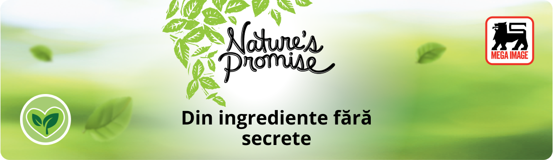 Cu Nature’s Promise, mâncarea curată și echilibrată devine accesibilă pentru tine și familia ta. Găsești produsele Nature’s Promise exclusiv la Mega Image, create din ingrediente atent selecționate, fără coloranți sintetici, arome artificiale sau conservanți inutili.