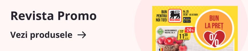 *Campania este valabilă până pe 31 decembrie 2025 la orice comandă cu livrare programată de minimim 250 lei (valoarea finală a comenzii, fără taxe, după aplicarea promoțiilor/reducerilor și excluzând produsele din categoria "Tutun și băuturi spirtoase").